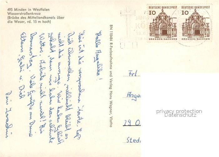 72946890 alte Postkarte Minden Westfalen Wasserstrassenkreuz postalisch gelaufen Erhaltung siehe scans [KathaD81] KatCode: 11110005770024