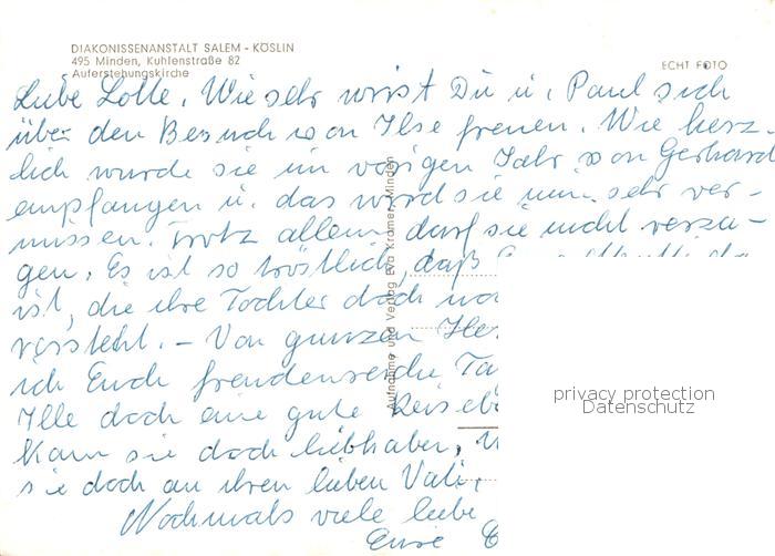 73830830 Minden Westfalen Weser Diakonissenanstalt Salem Koeslin Auferstehungskirche postalisch nicht gelaufen Erhaltung siehe scans [FriedD77] KatCode: 11110005770024