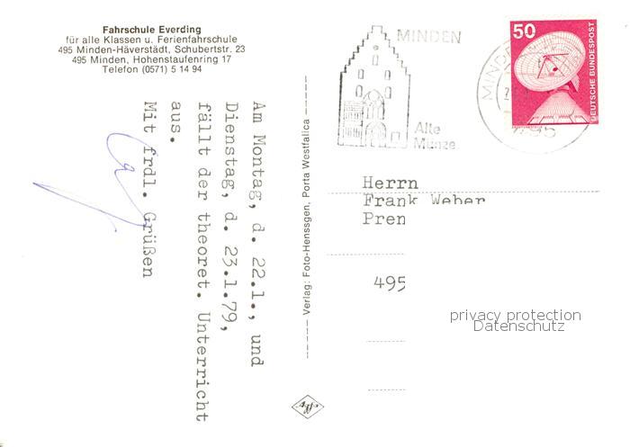 73830884 alte Postkarte Minden Westfalen Weser Fahrschule Everding Teilansichten postalisch gelaufen Erhaltung siehe scans [FriedD77] KatCode: 11110005770024