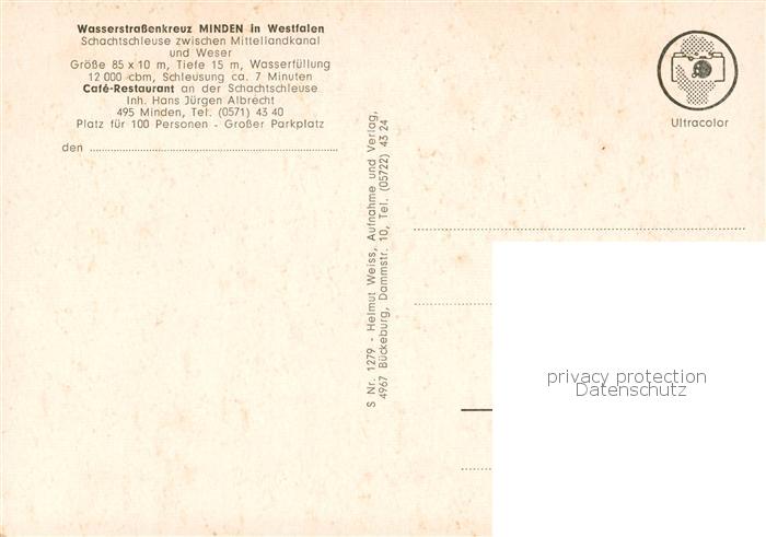 73842168 Minden Westfalen Weser Schachtschleuse Schleusung Details Cafe an der Schachtschleuse postalisch nicht gelaufen Erhaltung siehe scans [WerneD78] KatCode: 11110005770024