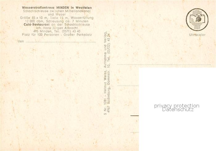 73829695 Minden Westfalen Weser Schachtschleuse Wasserstrassenkreuz postalisch nicht gelaufen Erhaltung siehe scans [FriedD77] KatCode: 11110005770024