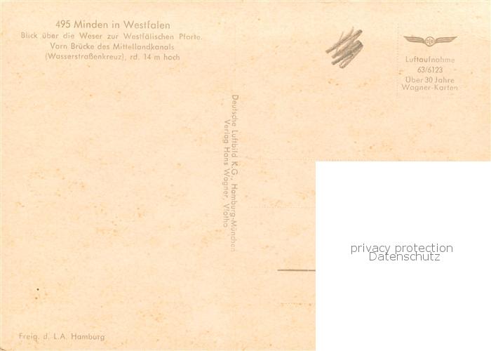 73829713 Minden Westfalen Weser Schachtschleuse Wasserstrassenkreuz Weserpartie postalisch nicht gelaufen Fliegeraufnahme Erhaltung siehe scans [FriedD77] KatCode: 11110005770024