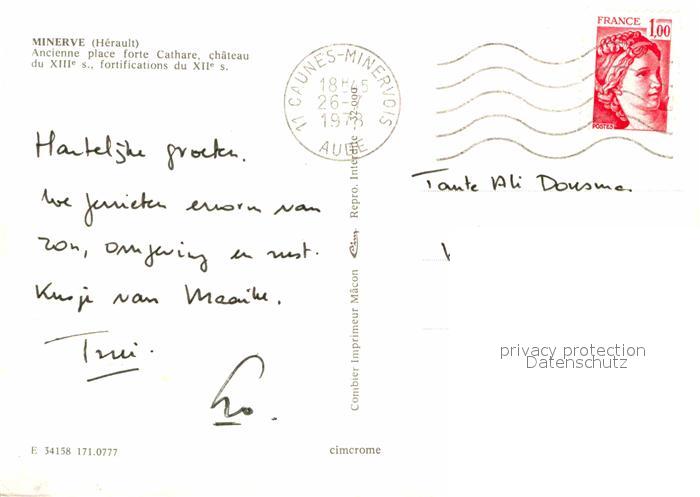 12663277 carte postale Minerve Chàteau postalisch gelaufen Erhaltung siehe scans [AndreD76] KatCode: 11170034134158