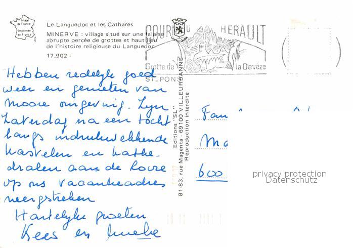 12664385 carte postale Minerve Le Languedoc et les Cathares postalisch gelaufen Erhaltung siehe scans [WerneD78] KatCode: 11170034134158