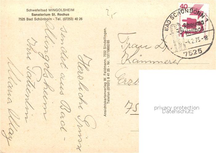 73208628 alte Postkarte Mingolsheim Sanatorium St. Rochus postalisch gelaufen Erhaltung siehe scans [NatalD47] KatCode: 11110008215100