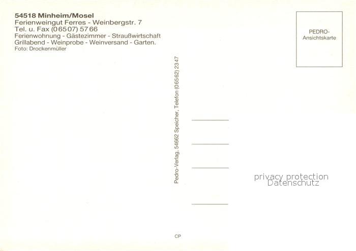 73648148 Minheim Ferienweingut Ferres Panorama Blick ins Moseltal postalisch nicht gelaufen Erhaltung siehe scans [FriedD77] KatCode: 11110007231086