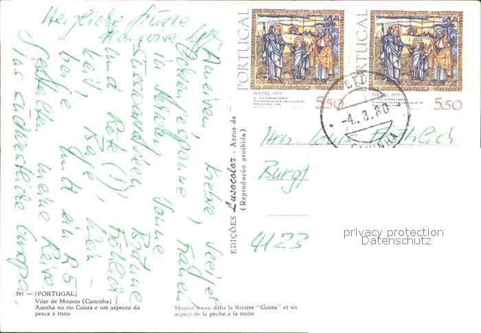 old postcard Minho Vilar de Mouros Azenha no rio Coura e um aspecto da pesca a truta postalisch gelaufen Erhaltung siehe scans