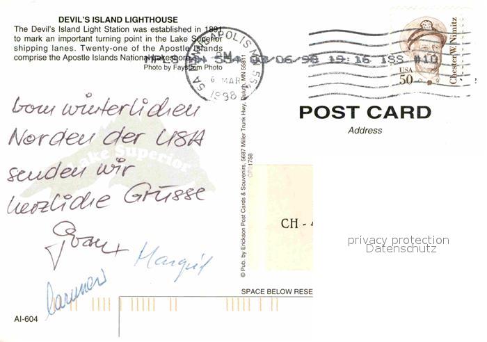 72636923 old postcard Minneapolis Minnesota Devils Island Lighthouse postalisch gelaufen Erhaltung siehe scans [WerneD78] KatCode: 14140250000000