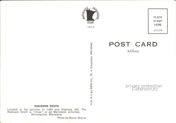72128472 Minneapolis Minnesota Radisson South Hotel postalisch nicht gelaufen Erhaltung siehe scans KatCode: 14140250000000
