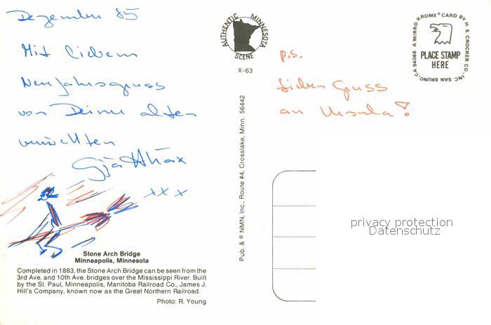 72670329 Minneapolis Minnesota Stone Arch Bridge postalisch nicht gelaufen Erhaltung siehe scans [LiesaD40] KatCode: 14140250000000