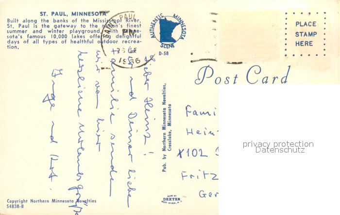 73667352 old postcard Minnesota City St Paul Fliegeraufnahme postalisch gelaufen Erhaltung siehe scans [WerneD78] KatCode: 14140250000000