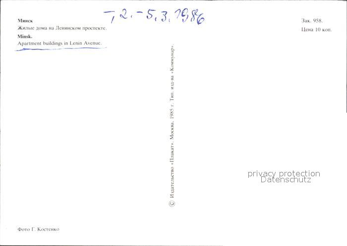 Minsk Weissrussland Apartment buildings in Lenin Avenue postalisch nicht gelaufen Erhaltung siehe scans
