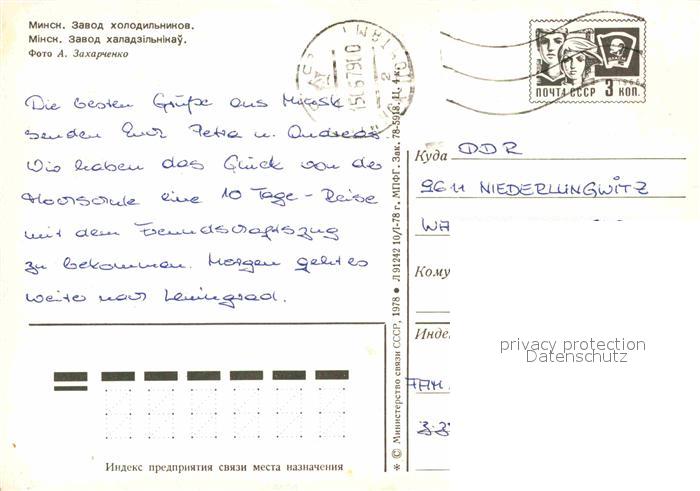 alte Postkarte Minsk Weissrussland Fabrik postalisch gelaufen Ganzsache (eingedruckte Briefmarke) Erhaltung siehe scans [NatalD47]