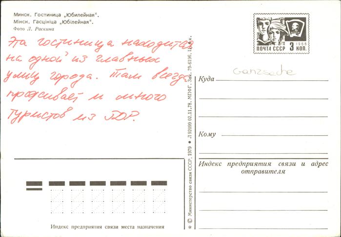 Minsk Weissrussland Hotel postalisch nicht gelaufen Ganzsache (eingedruckte Briefmarke) Erhaltung siehe scans