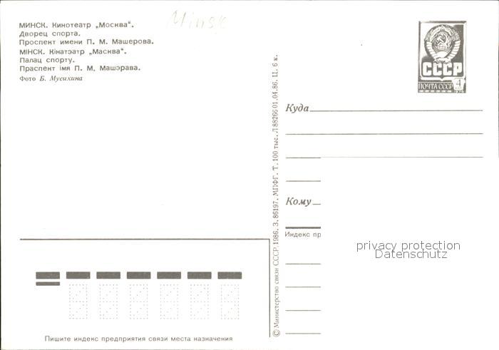 Minsk Weissrussland Kinotheater Moscow Sportpalast postalisch nicht gelaufen Ganzsache (eingedruckte Briefmarke) Erhaltung siehe scans