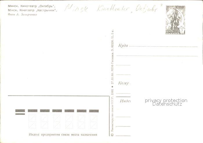 Minsk Weissrussland Kinotheater Oktjabr postalisch nicht gelaufen Erhaltung siehe scans