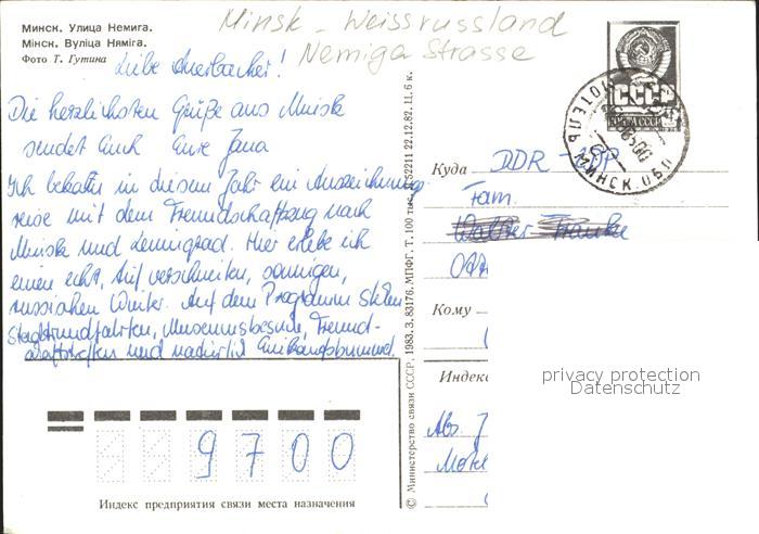 old postcard Minsk Weissrussland Nemiga Strasse postalisch gelaufen Ganzsache (eingedruckte Briefmarke) Erhaltung siehe scans