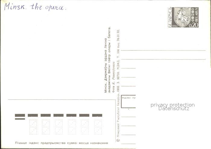 Minsk Weissrussland Oper postalisch nicht gelaufen Erhaltung siehe scans