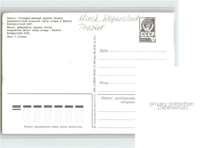 Minsk Weissrussland Theater postalisch nicht gelaufen Erhaltung siehe scans