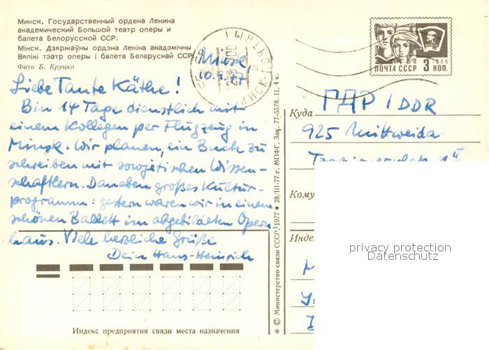 old postcard Minsk Weissrussland Theater postalisch gelaufen Erhaltung siehe scans [IrynaD87]
