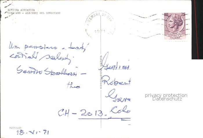 old postcard Miramare di Rimini Alberghi sul Lungomare postalisch gelaufen Erhaltung siehe scans