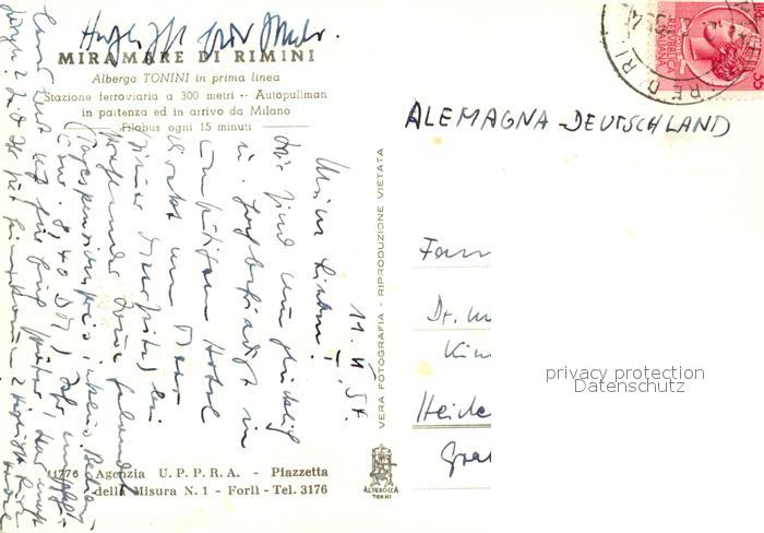 13251971 Miramare di Rimini Albergo Tonini postalisch gelaufen Erhaltung siehe scans [NatalD47] old postcard Nata Katcode 11240
