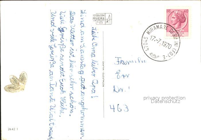 old postcard Miramare di Rimini Fliegeraufnahme Strand Segelboote postalisch gelaufen Erhaltung siehe scans