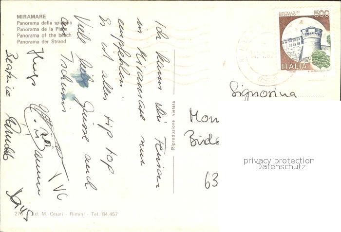 old postcard Miramare di Rimini Panorama della spiaggia Strand Hotels postalisch gelaufen Erhaltung siehe scans [FriedD77]