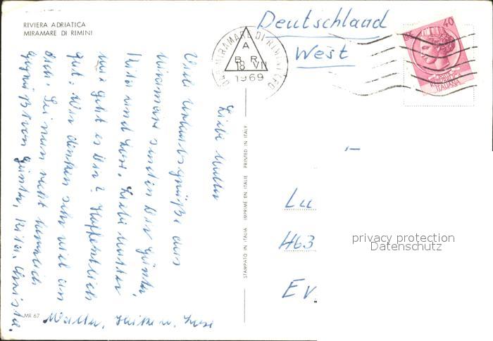 old postcard Miramare di Rimini Panorama Strand Promenade Strassenpartie bei Nacht postalisch gelaufen Erhaltung siehe scans