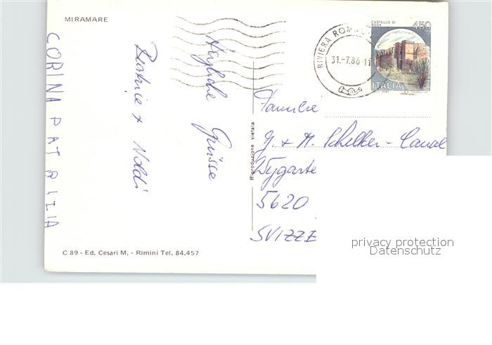 old postcard Miramare di Rimini Strand Promenade Sonnenuntergang am Meer postalisch gelaufen Erhaltung siehe scans [FriedD77]