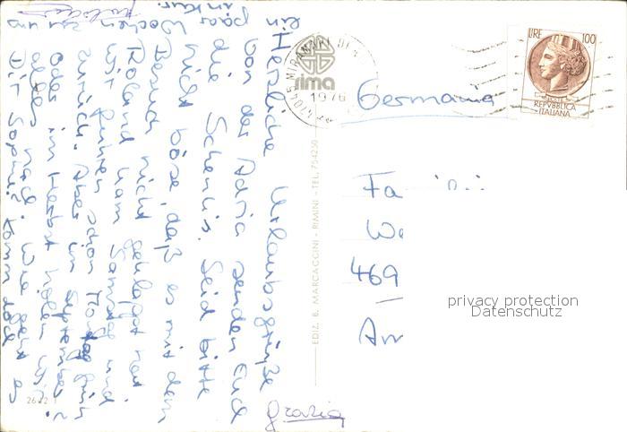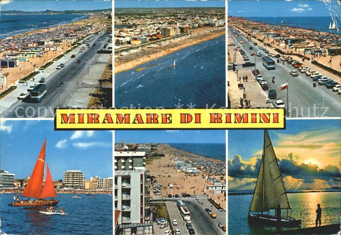 old postcard Miramare di Rimini Strand Uferpromenade Segeln Abendstimmung am Meer postalisch gelaufen Erhaltung siehe scans