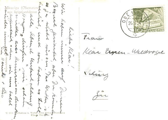 13872059 alte Postkarte Miraniga Obersaxen GR mit Briegelserhoerner postalisch gelaufen Erhaltung siehe scans [WerneD78] KatCode: 11470100355470