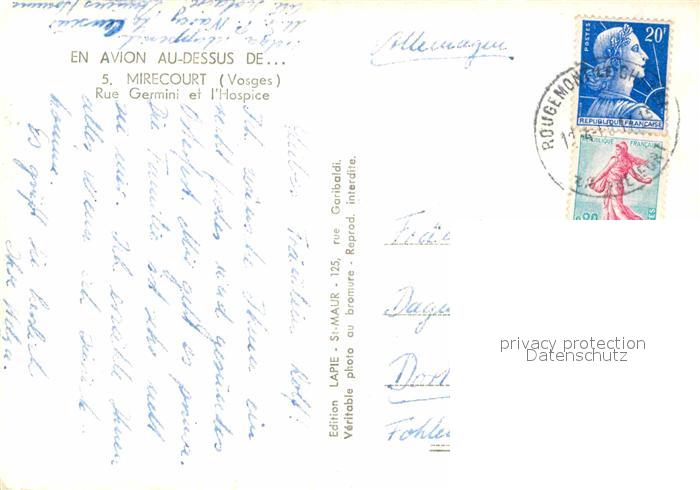 12660609 carte postale Mirecourt Fliegeraufnahme Rue Gemini et L Hospital postalisch gelaufen Erhaltung siehe scans [LiesaD40] KatCode: 11170088288304