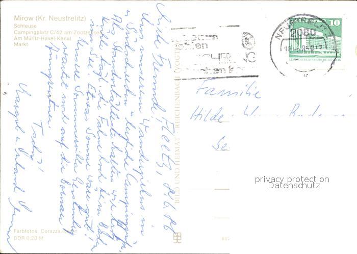 72015752 alte Postkarte Mirow postalisch gelaufen Erhaltung siehe scans KatCode: 11110013055044