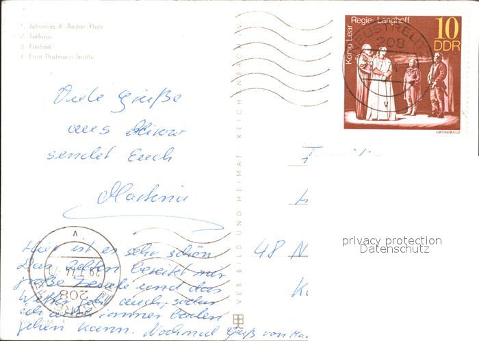 72371471 alte Postkarte Mirow Johannes Becher Platz Torhaus Freibad Ernst Thaelmann Strasse postalisch gelaufen Erhaltung siehe scans KatCode: 11110013055044