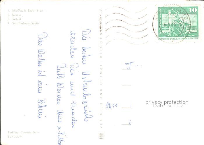 72373170 alte Postkarte Mirow Johannes R Becher Platz Torhaus Freibad Ernst Thaelmann Strasse postalisch gelaufen Erhaltung siehe scans KatCode: 11110013055044