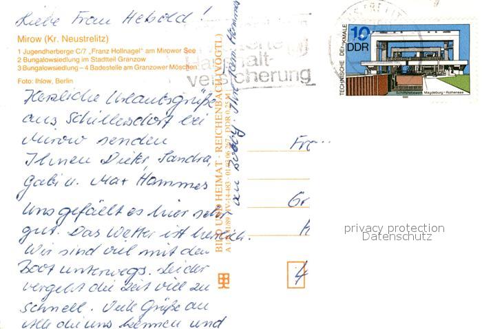 73099952 alte Postkarte Mirow Jugendherberge Bungalowsiedlung Badestelle postalisch gelaufen Erhaltung siehe scans [KathaD81] KatCode: 11110013055044