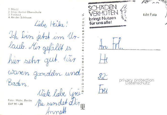 73868548 alte Postkarte Mirow Markt Etkar Andre Oberschule Freibad An der Schleuse postalisch gelaufen Erhaltung siehe scans [WerneD78] KatCode: 11110013055044