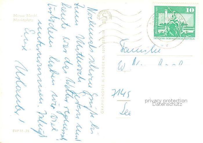 73142886 alte Postkarte Mirow Marktplatz postalisch gelaufen Erhaltung siehe scans [FriedD77] KatCode: 11110013055044
