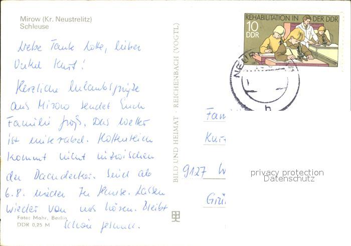 72017755 alte Postkarte Mirow Schleuse postalisch gelaufen KatCode: 11110013055044