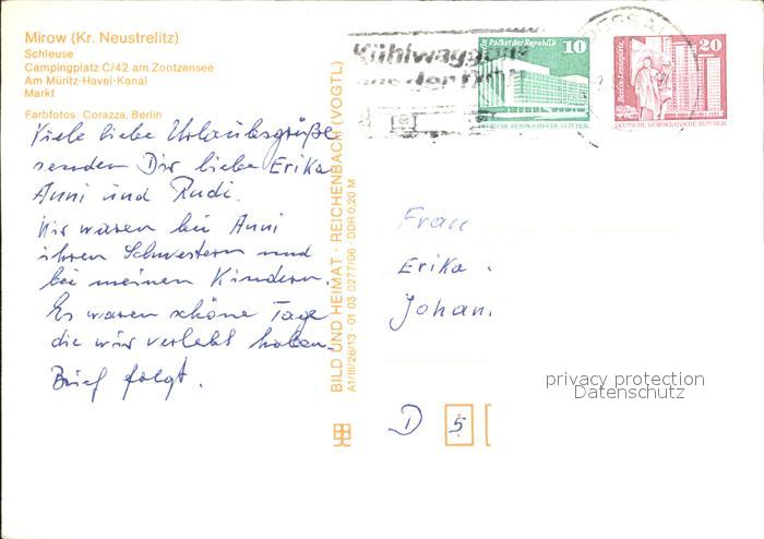 72371465 alte Postkarte Mirow Schleuse Campingplatz Am Mueritz Havel Kanal Markt postalisch gelaufen Erhaltung siehe scans KatCode: 11110013055044