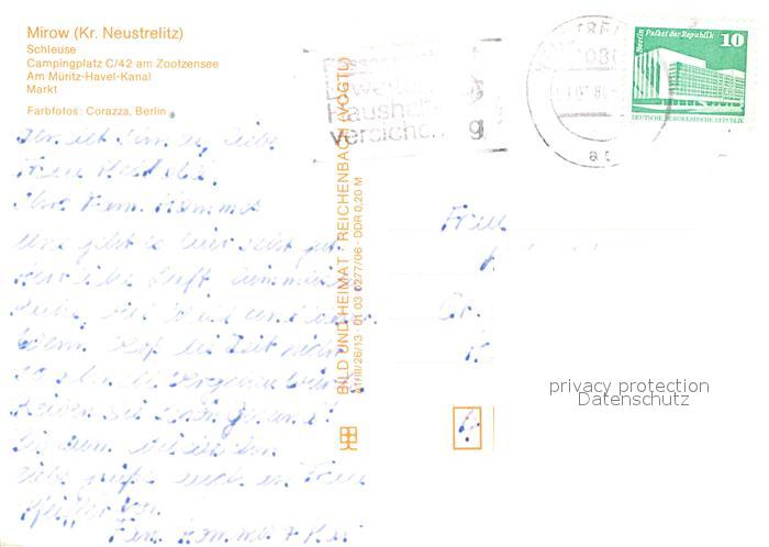 72945844 alte Postkarte Mirow Schleuse Campingplatz am Zootzensee Mueritz Havel Kanal Markt postalisch gelaufen Erhaltung siehe scans [WerneD78] KatCode: 11110013055044