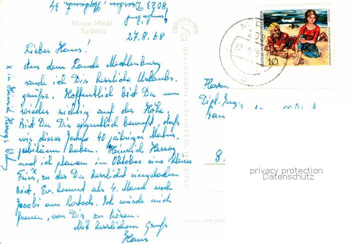 72650198 alte Postkarte Mirow Torhaus postalisch gelaufen Erhaltung siehe scans [NatalD47] KatCode: 11110013055044