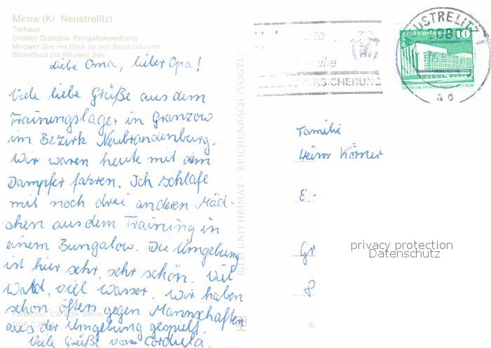 72631903 alte Postkarte Mirow Torhaus Granzow See Bootshaeuser postalisch gelaufen Erhaltung siehe scans [LiesaD40] KatCode: 11110013055044