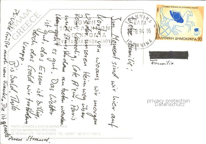 old postcard Mirtiotissa Strand Kueste postalisch gelaufen Erhaltung siehe scans