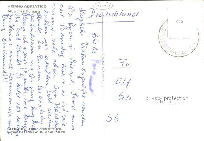 old postcard Misano Adriatico Alberghi e Fontana postalisch gelaufen Erhaltung siehe scans
