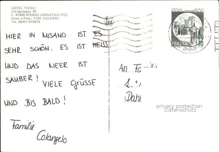 old postcard Misano Adriatico Hotel Tivoli postalisch gelaufen Erhaltung siehe scans