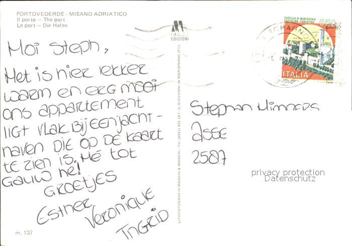 old postcard Misano Adriatico Portovederde Hafen postalisch gelaufen Erhaltung siehe scans [LiesaD40]