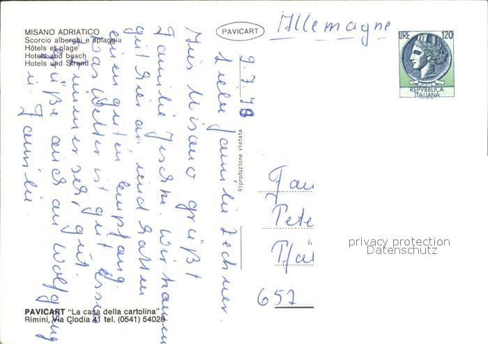 old postcard Misano Adriatico Scorcio alberghi e spiaggia postalisch gelaufen Erhaltung siehe scans