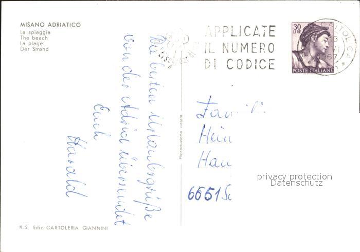old postcard Misano Adriatico Spiaggia Strand postalisch gelaufen Erhaltung siehe scans